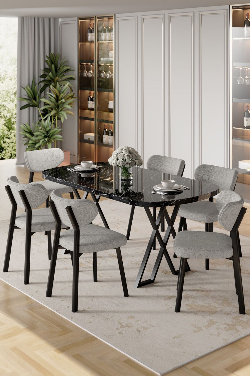 Set masă și scaune (7 piese), Hanah Home, Axton, Marmură neagră / Antracit