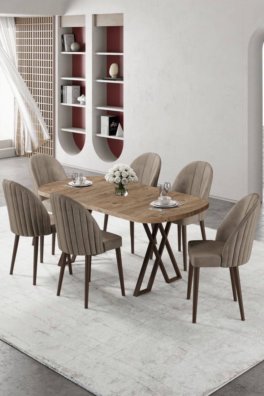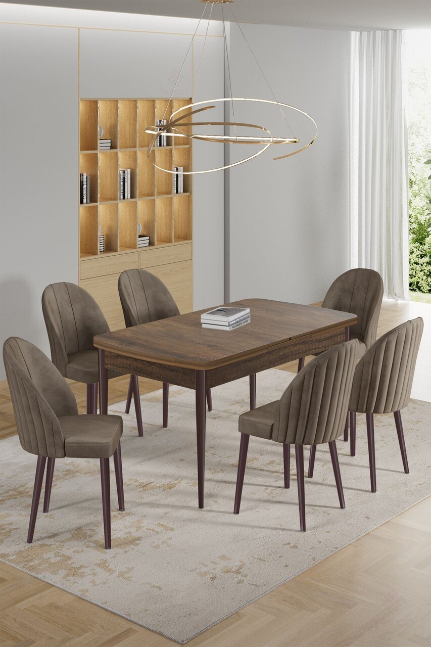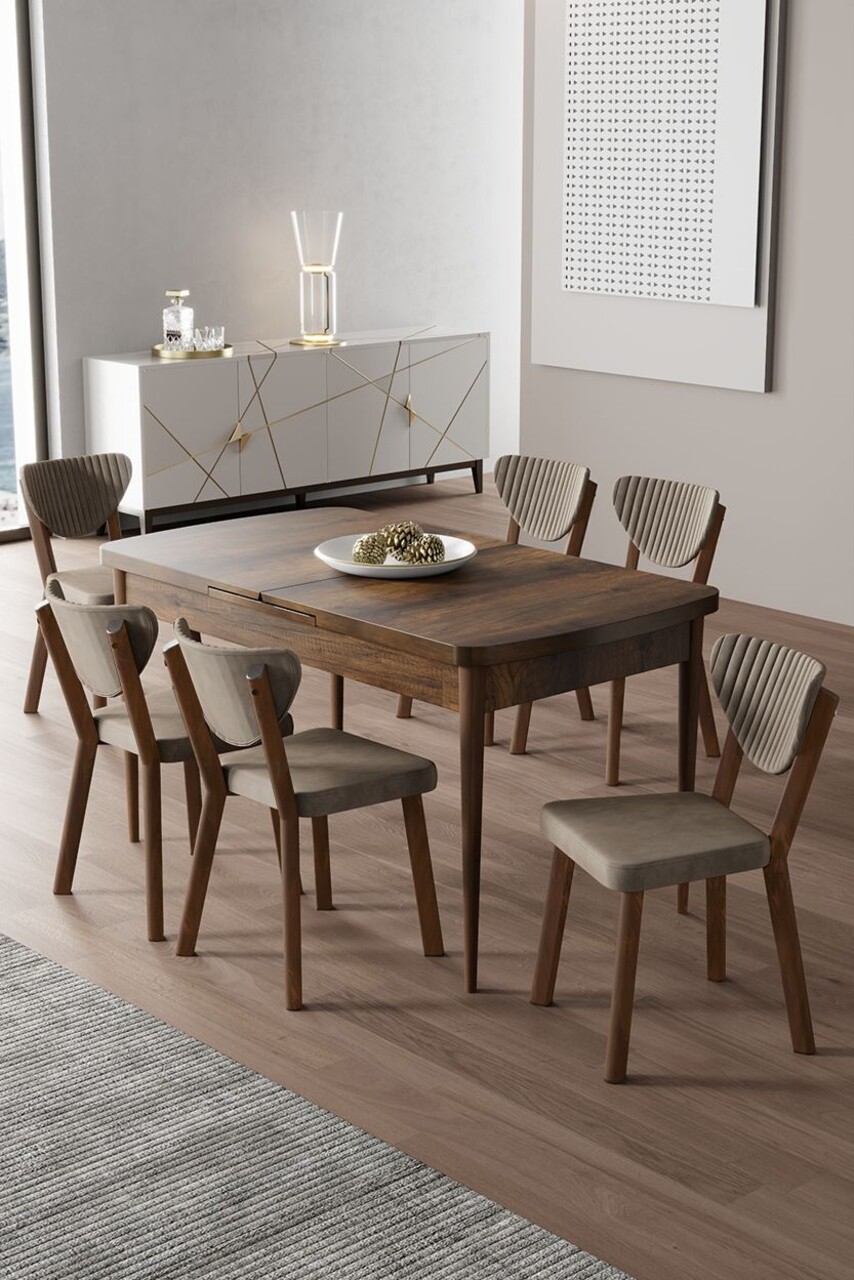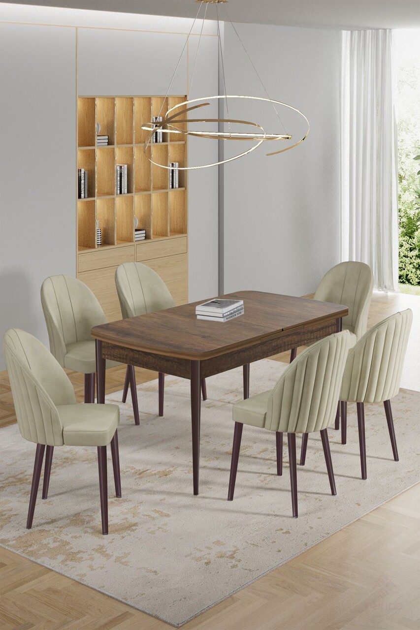 Set masa extensibila si scaune, Hanah Home, Enya, Baroc / Cappuccino