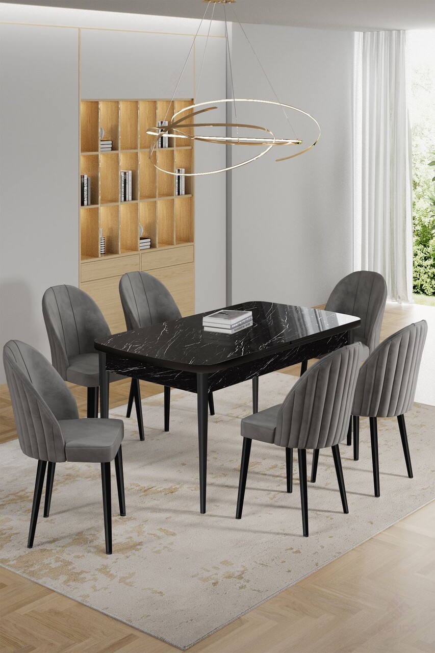 Set masa extensibila si scaune, Hanah Home, Enya, Marmură neagră / Gri
