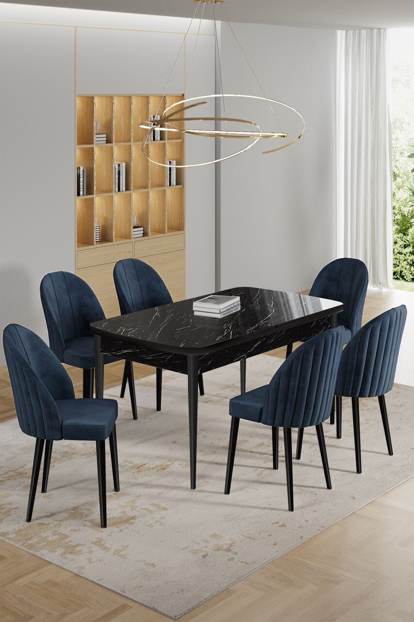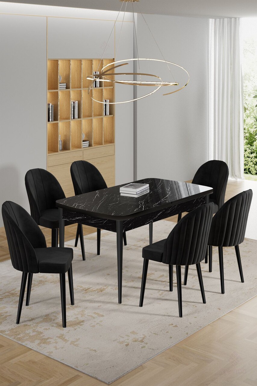 Set masa extensibila si scaune, Hanah Home, Enya, Marmură neagră / Negru