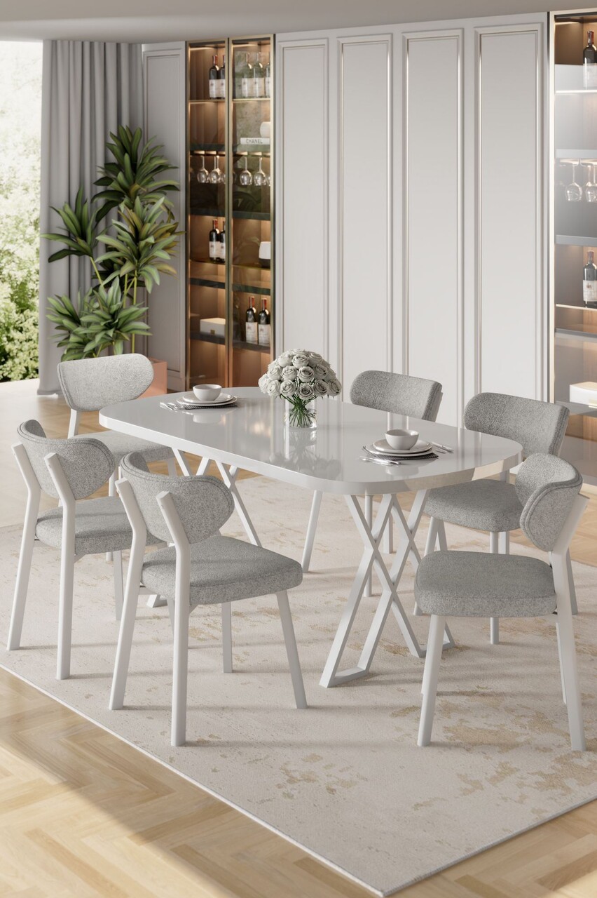 Set masă și scaune (7 piese), Hanah Home, Axton, Alb/Gri
