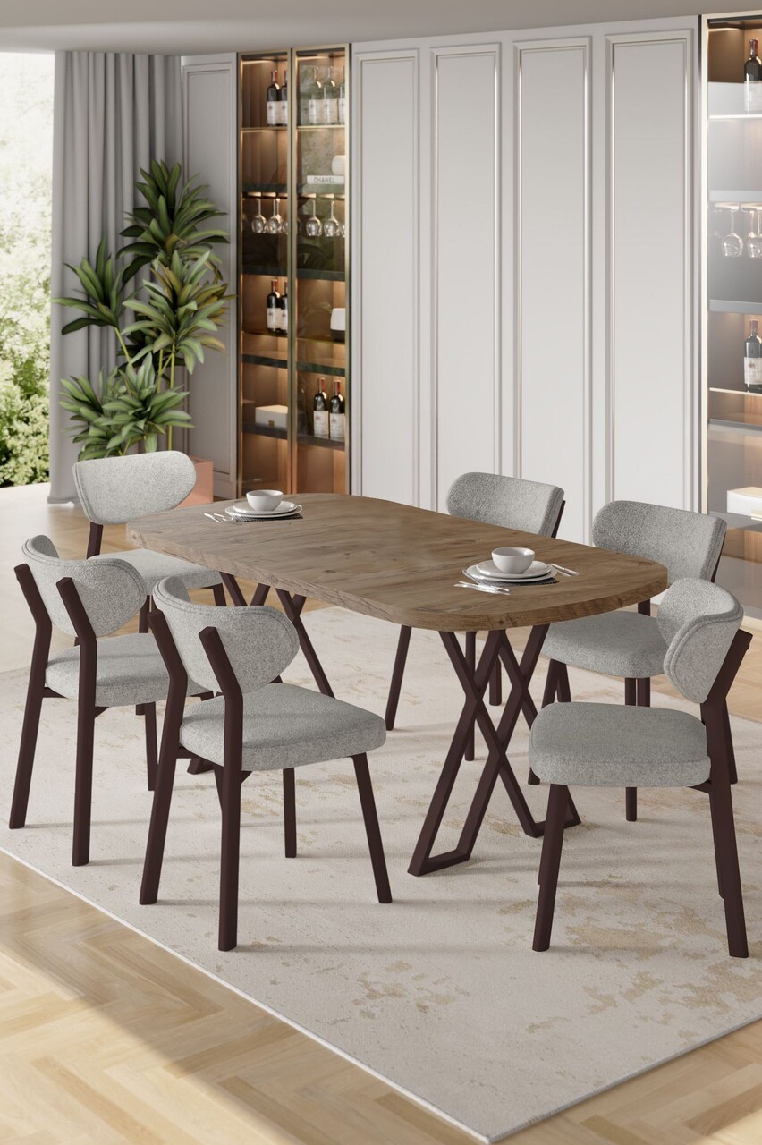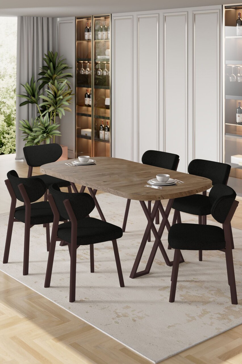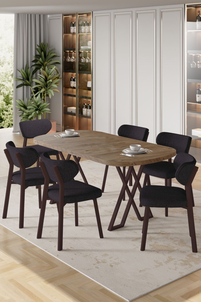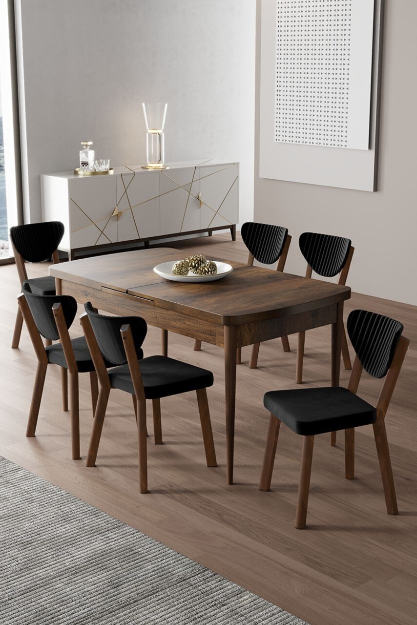Set masa extensibila si scaune, Hanah Home, Exve, Baroc / antracit