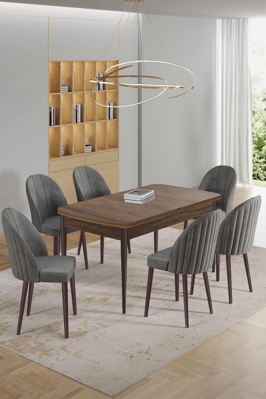 Set masa extensibila si scaune, Hanah Home, Enya, Baroc / antracit