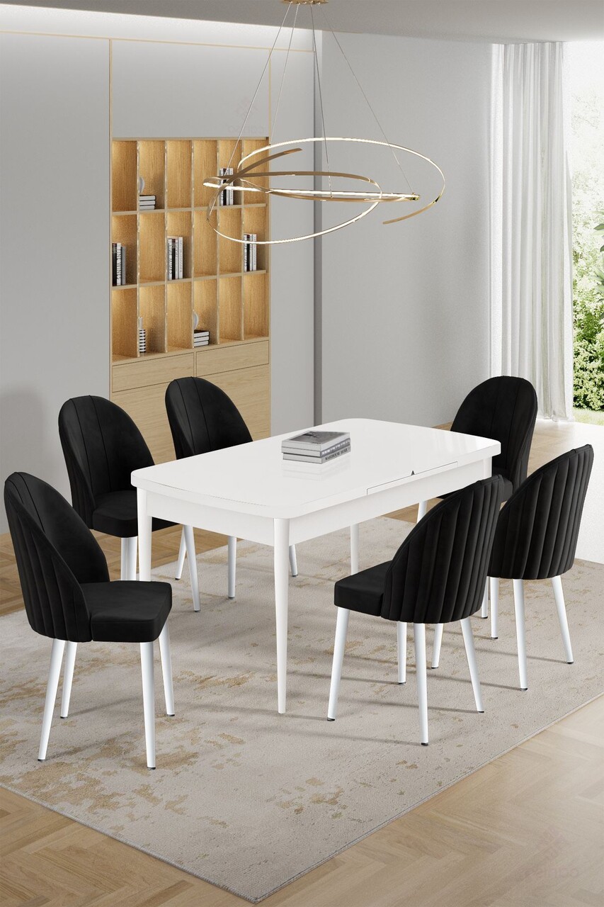 Set masa extensibila si scaune, Hanah Home, Enya, Alb/Negru