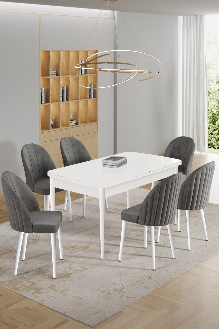 Set masa extensibila si scaune, Hanah Home, Enya, Alb/Gri