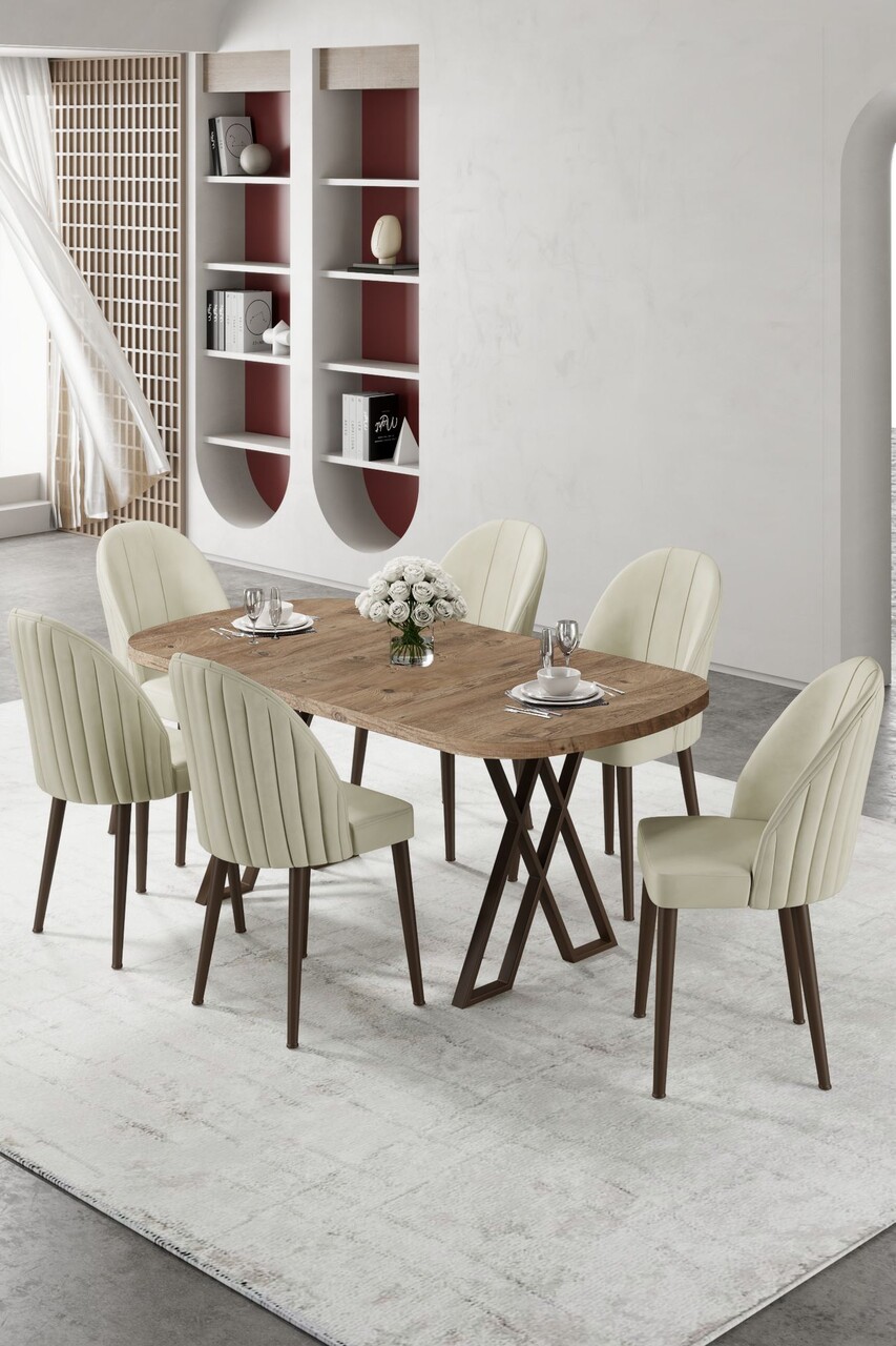 Set masa extensibila si scaune, Hanah Home, Exve, Baroc / Cappuccino