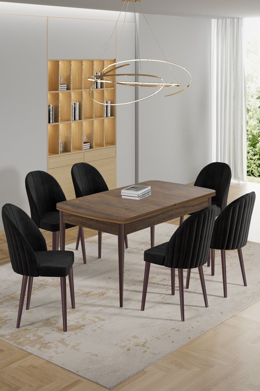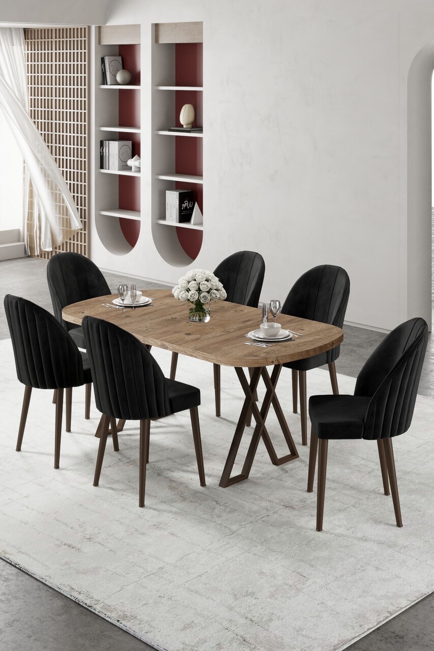 Set masa extensibila si scaune, Hanah Home, Exve, Baroc / Negru