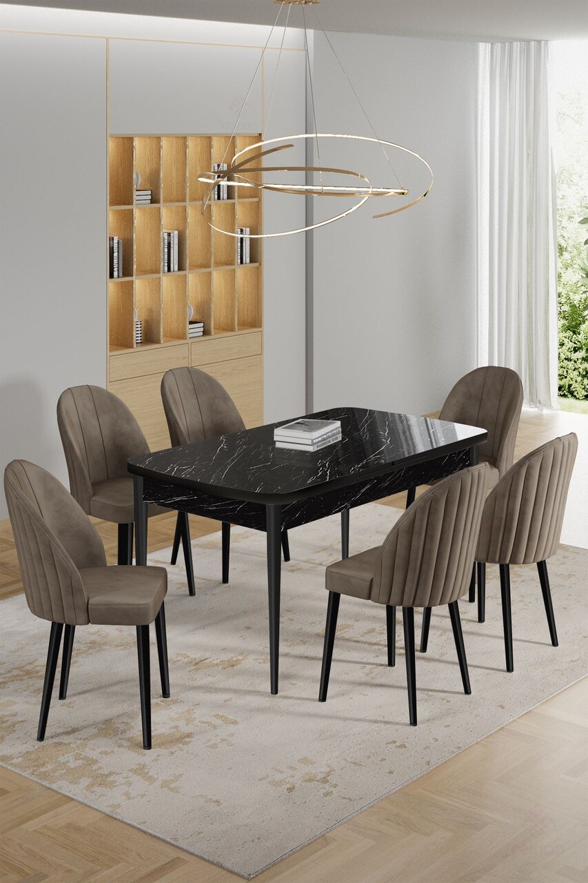 Set masa extensibila si scaune, Hanah Home, Enya, Marmură neagră / Cappuccino