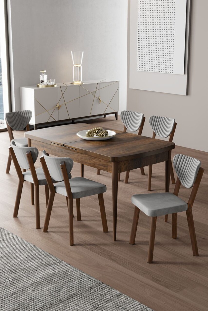 Set masa extensibila si scaune, Hanah Home, Enya, Baroc / Gri