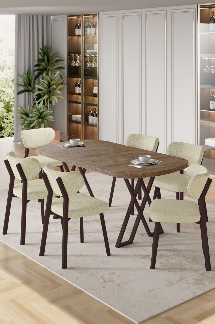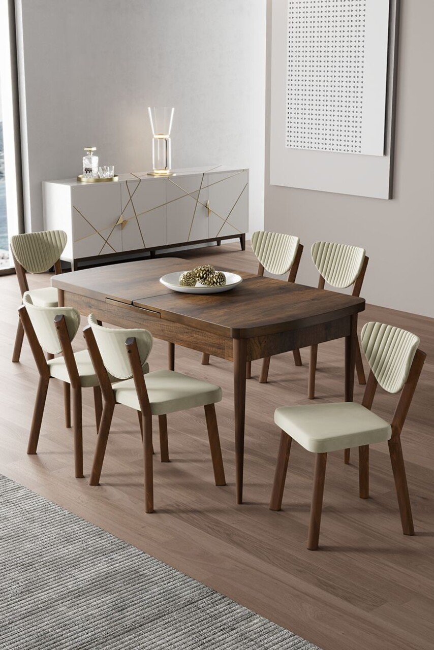 Set masă și scaune (7 piese), Hanah Home, Kaye, Pin Atlantic / Cappuccino