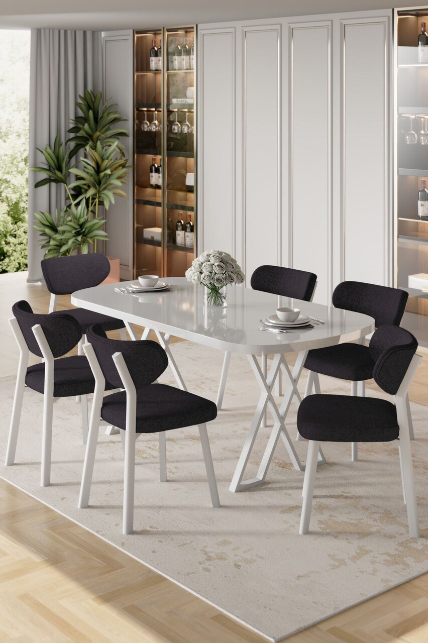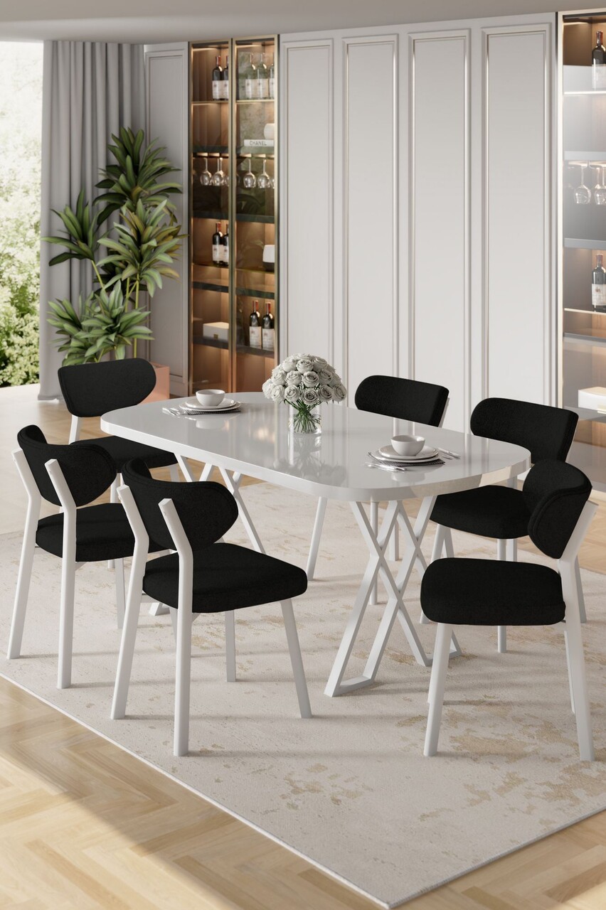 Set masă și scaune (7 piese), Hanah Home, Axton, Alb/Negru