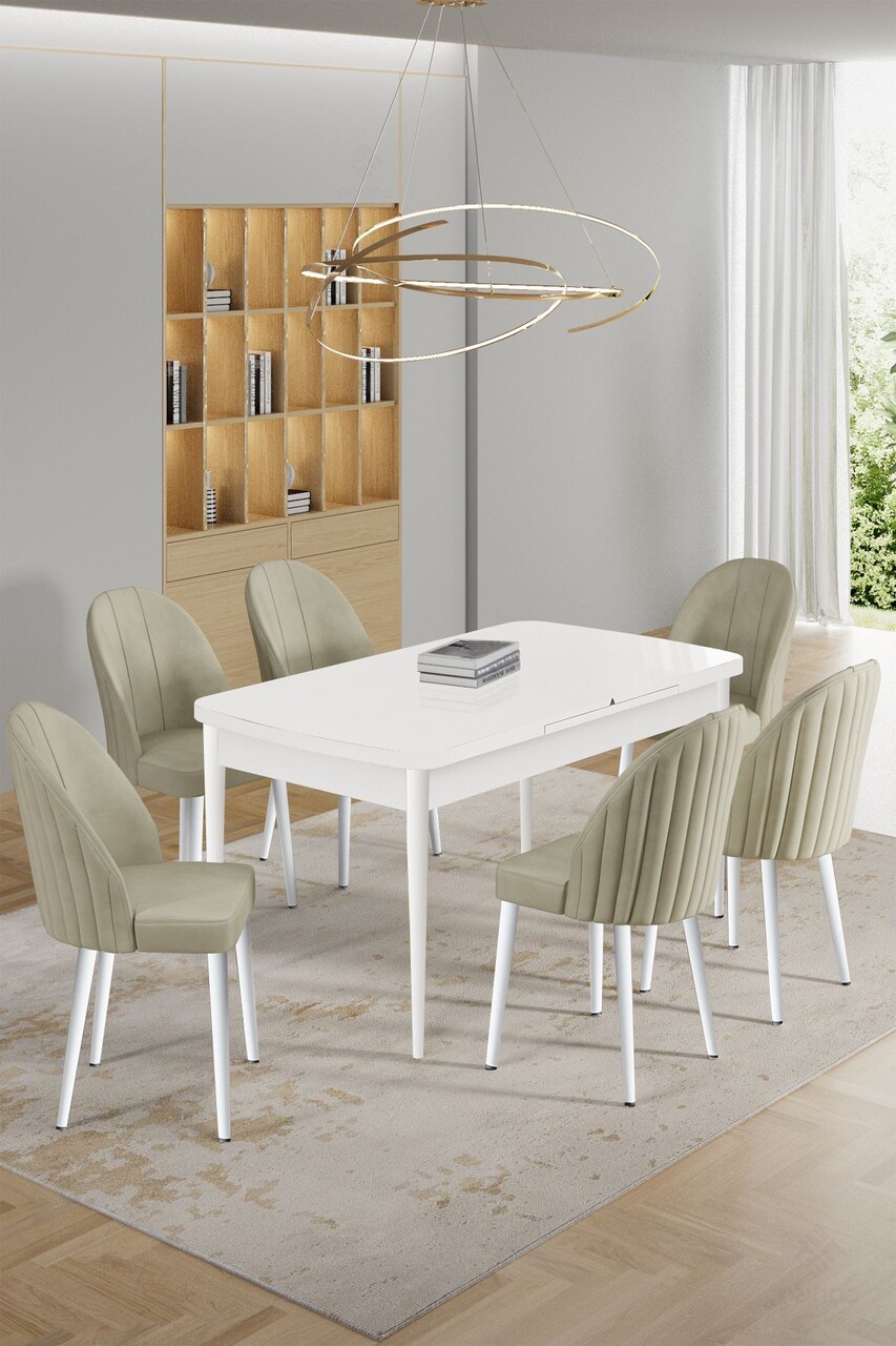 Set masa extensibila si scaune, Hanah Home, Enya, Alb / Cappuccino