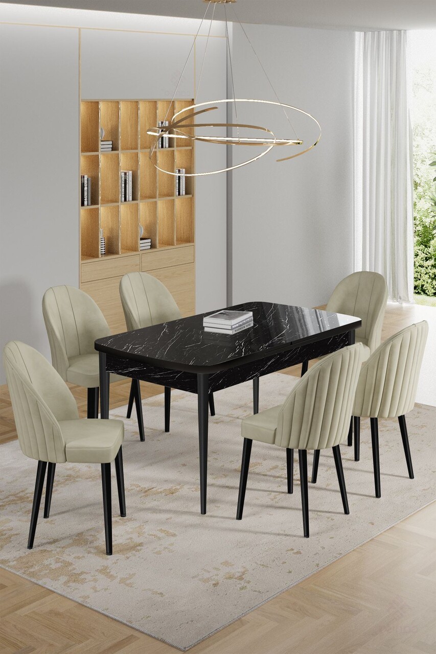 Set masa extensibila si scaune, Hanah Home, Enya, Marmură neagră / Crem
