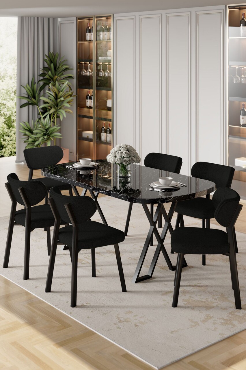 Set masă și scaune (7 piese), Hanah Home, Axton, Marmură neagră / Negru