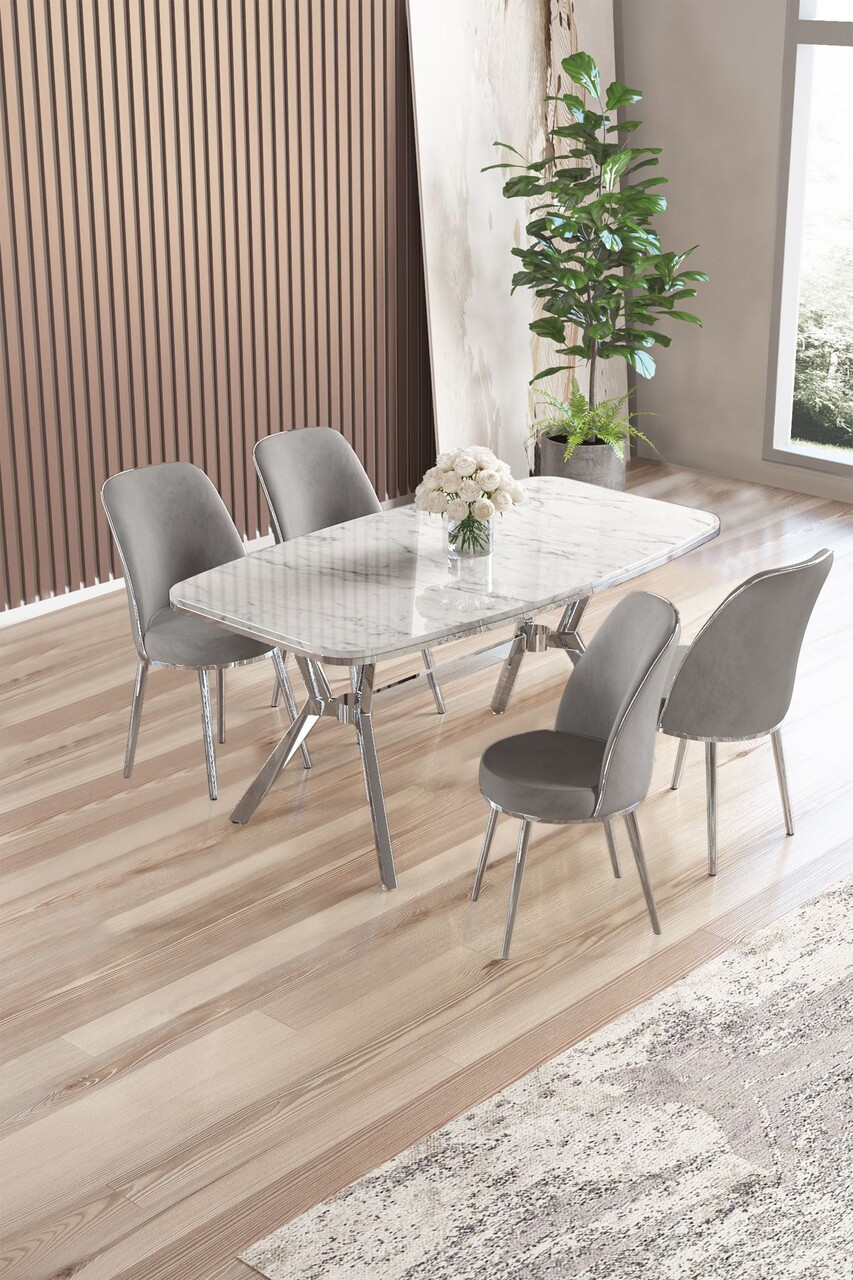 Set masă și scaune (5 bucăți), Hanah Home, Lena, Marmură albă / Crom / Gri