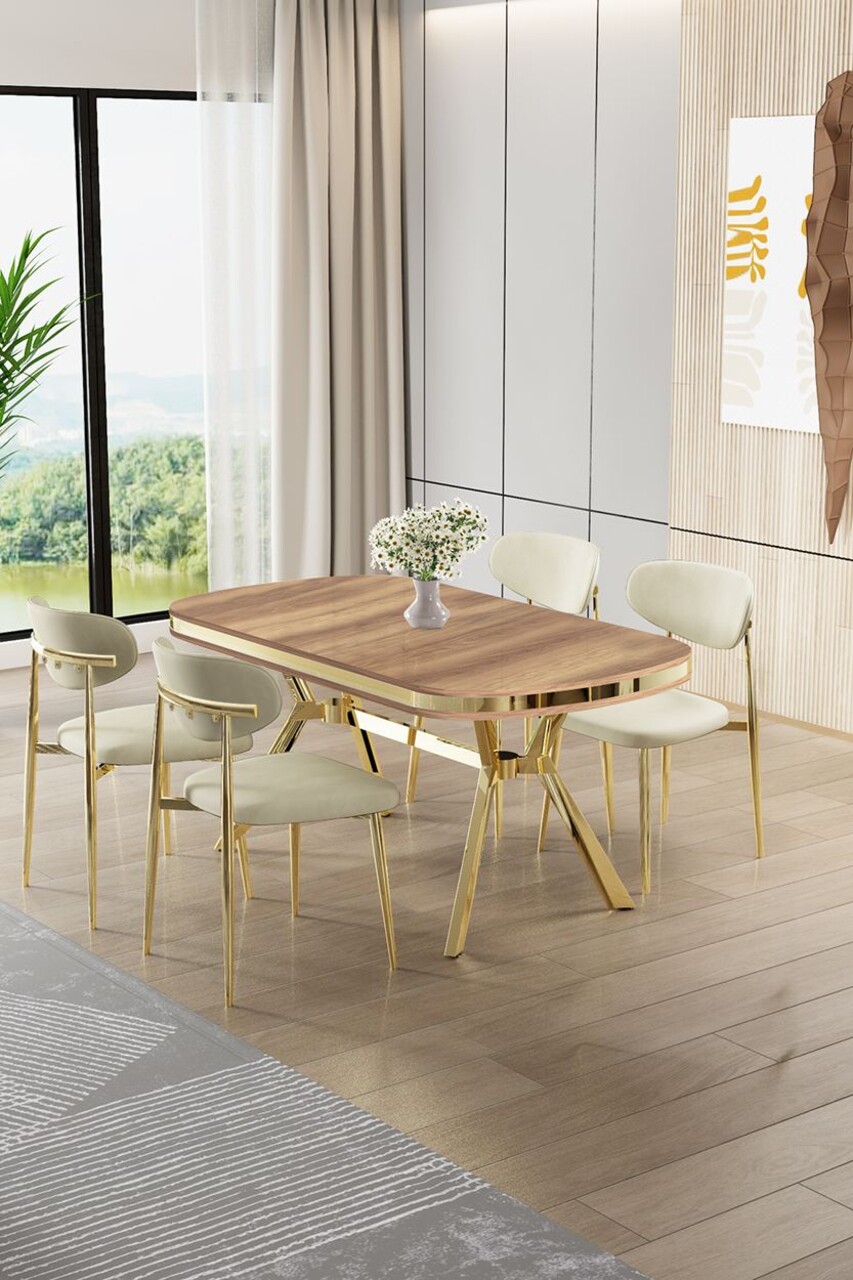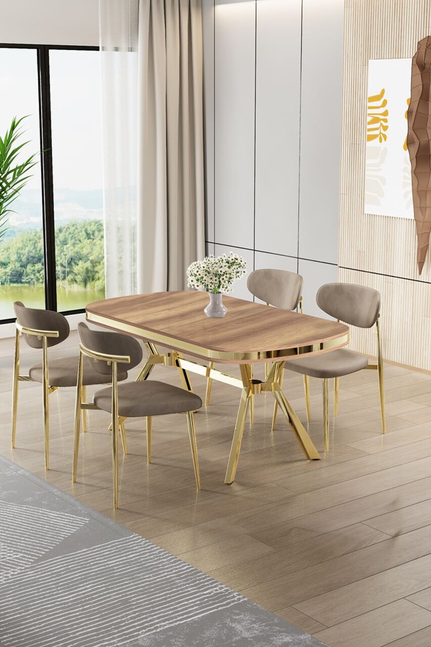 Set masă și scaune (5 bucăți), Hanah Home, Olya, Stejar / Auriu / Cappuccino