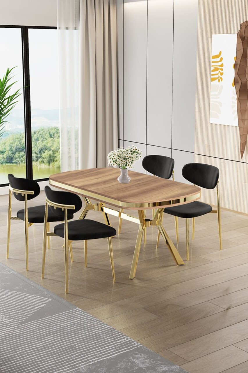 Set masă și scaune (5 bucăți), Hanah Home, Olya, Stejar / Auriu / Negru