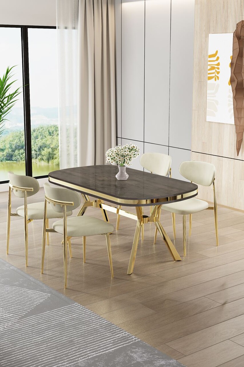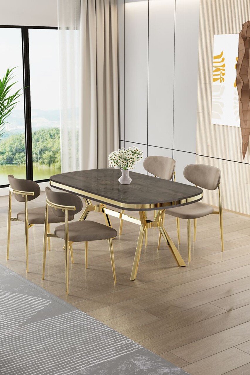 Set masă și scaune (5 bucăți), Hanah Home, Olya, Antracit / Auriu / Cappuccino