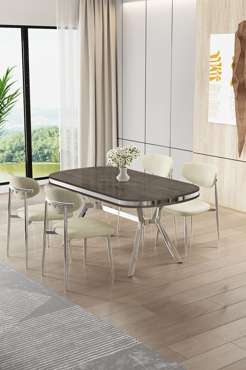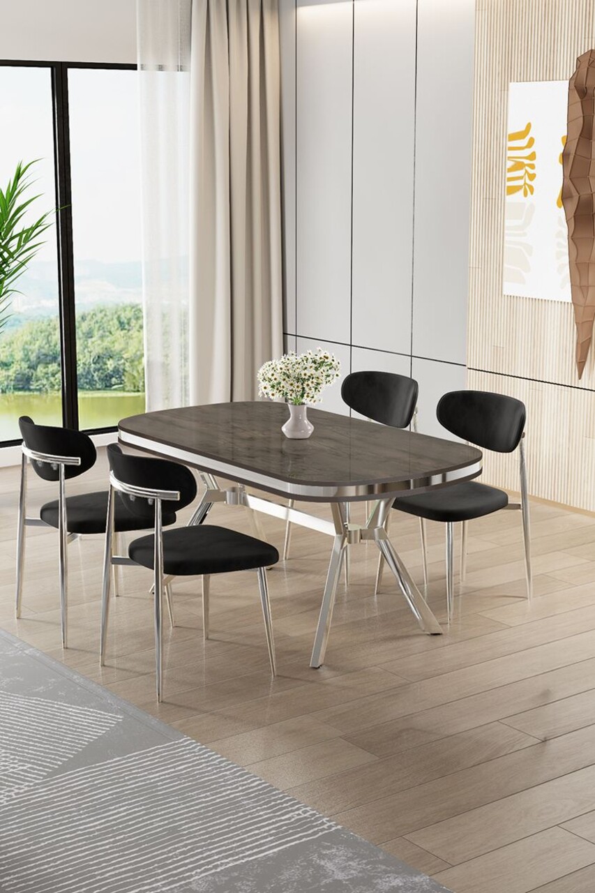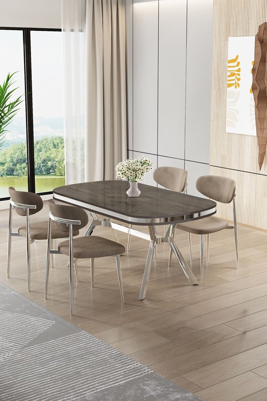 Set masă și scaune (5 bucăți), Hanah Home, Olya, Antracit / Crom / Cappuccino