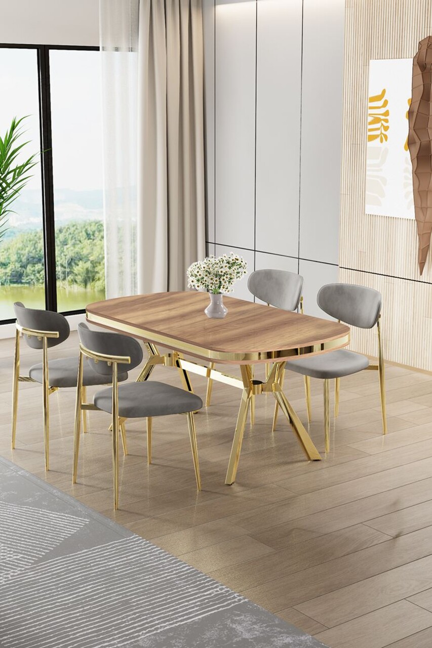 Set masă și scaune (5 bucăți), Hanah Home, Olya, Stejar / Auriu / Gri