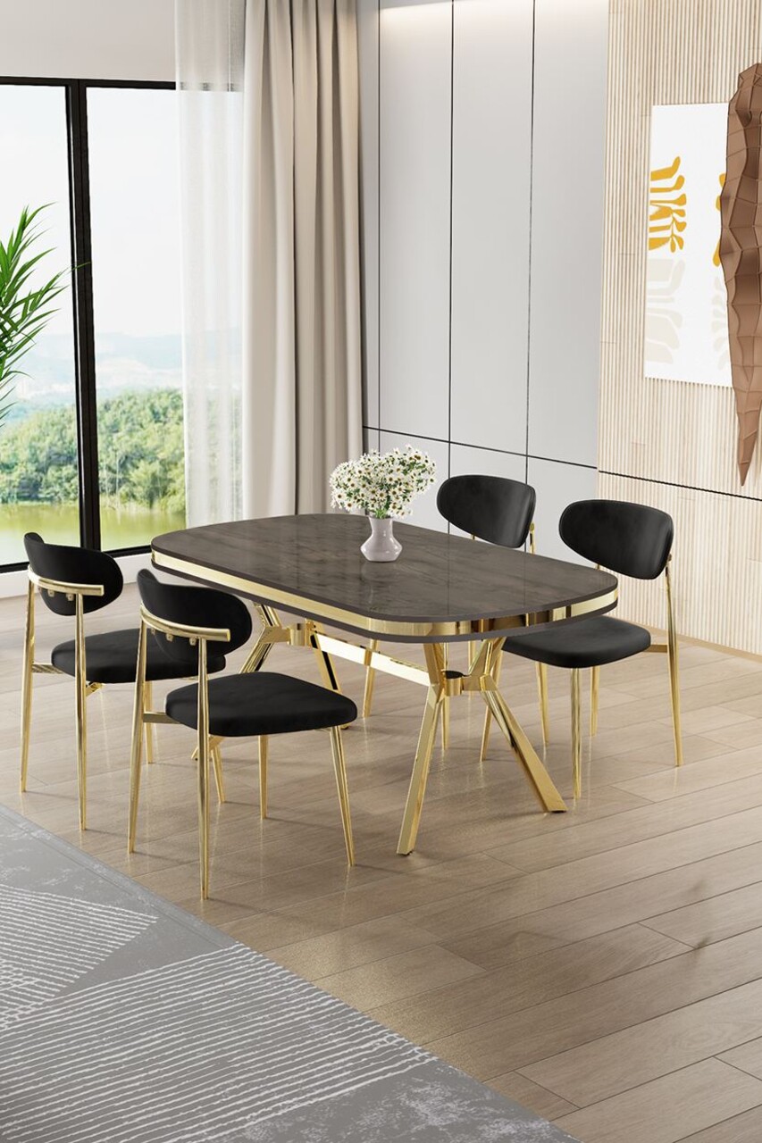 Set masă și scaune (5 bucăți), Hanah Home, Olya, Antracit / Aur / Negru