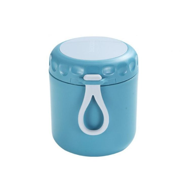 Caserola termica din inox, inchidere ermetica, termos, lingurita inclusa, capacitate 430ml Albastru