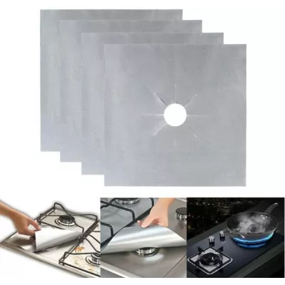 Set 4 folii de protectie aragaz, teflon, lavabile, reutilizabile, Negru Gri GRI