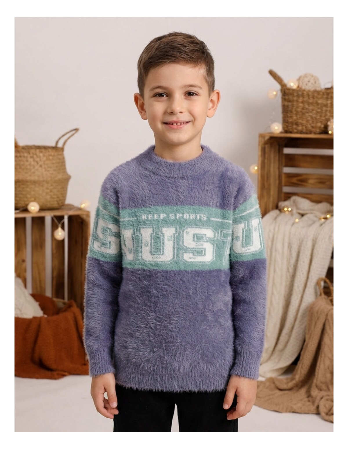 Pulover Mohair, Xeno-T, alb-albastru-maro
