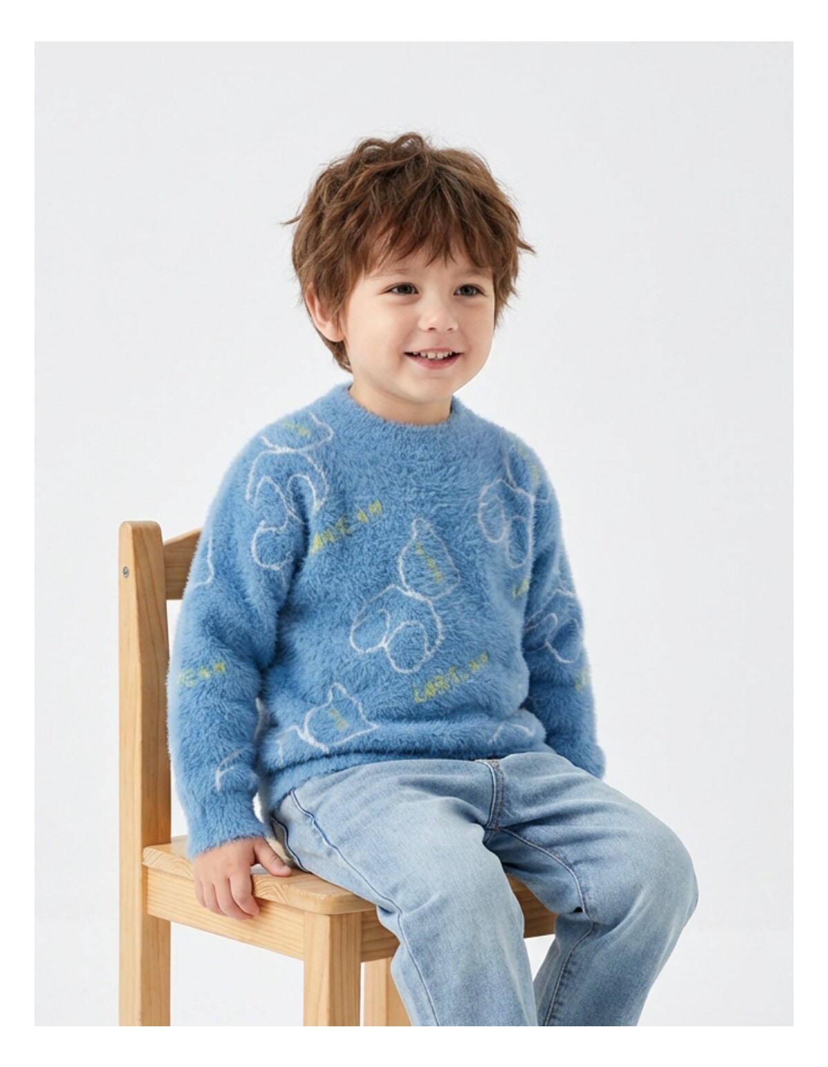 Pulover Mohair, Xeno-T, alb-albastru-gri