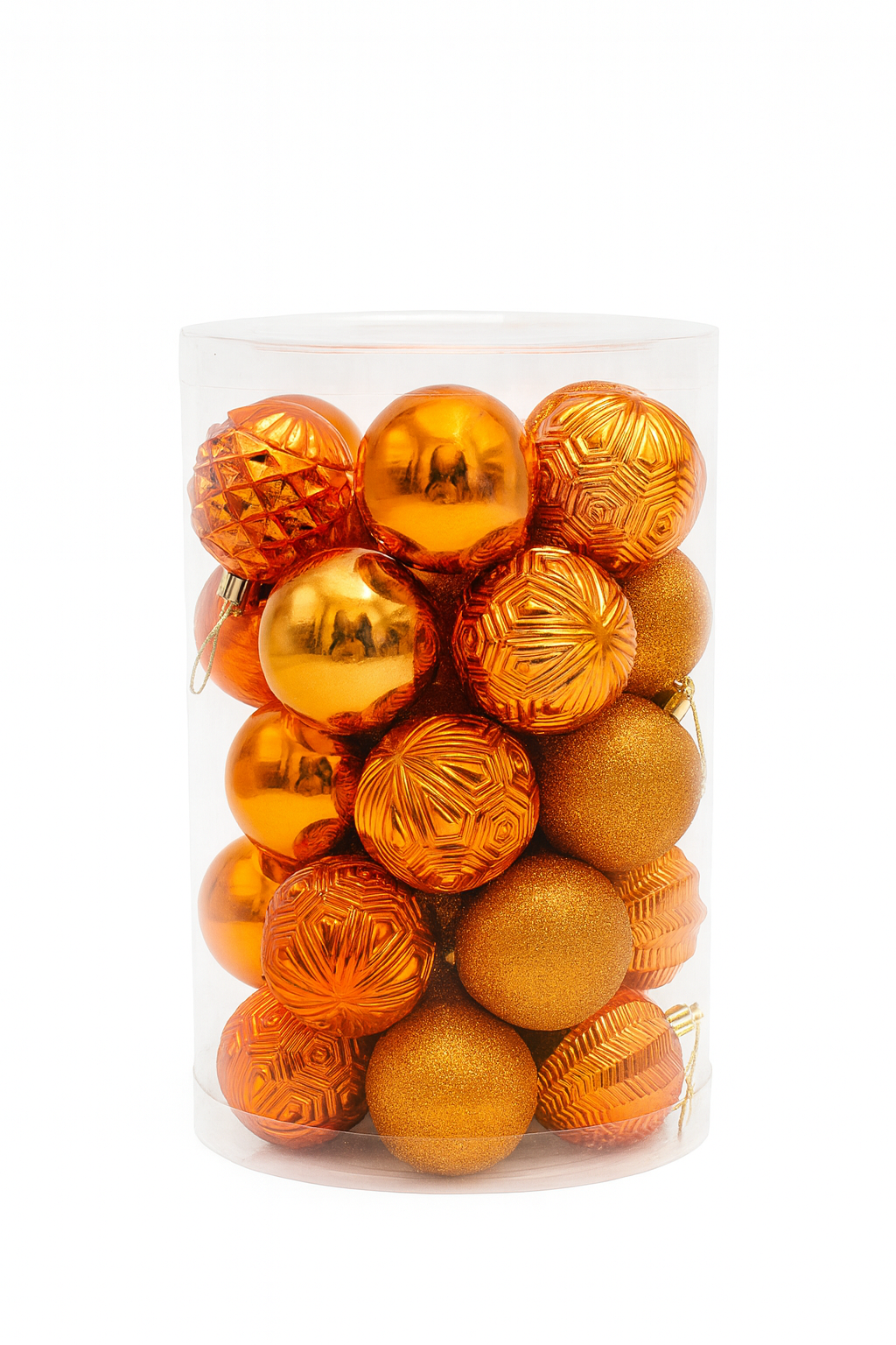 Set 34 Globuri Craciun Portocalii - Mici, Texturate si Stralucitoare, Decor Brad