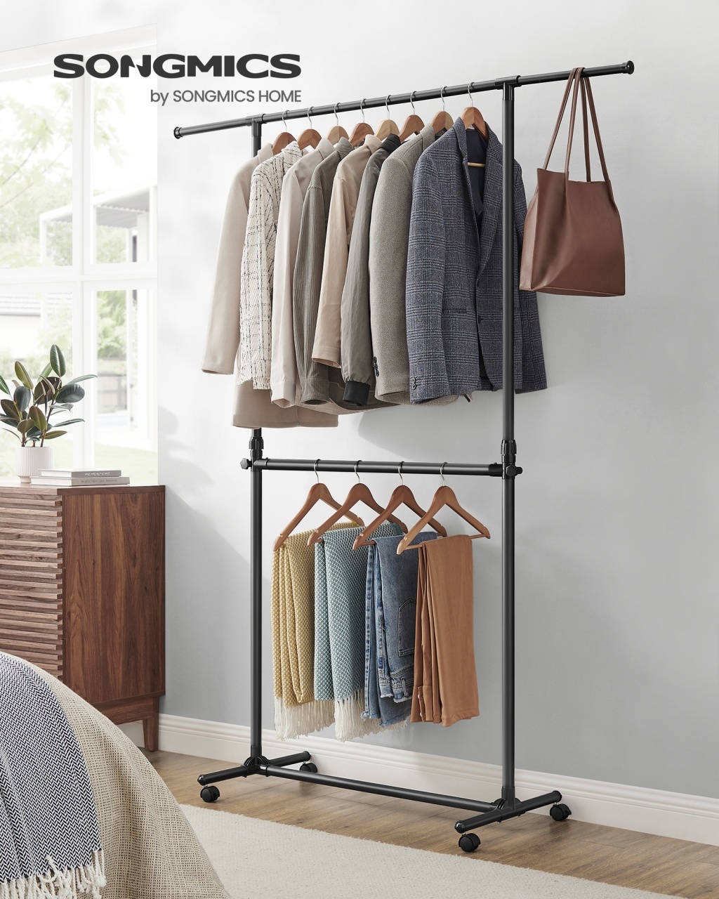 Suport pentru haine reglabil cu roti Songmics Negru 165x49x180 cm