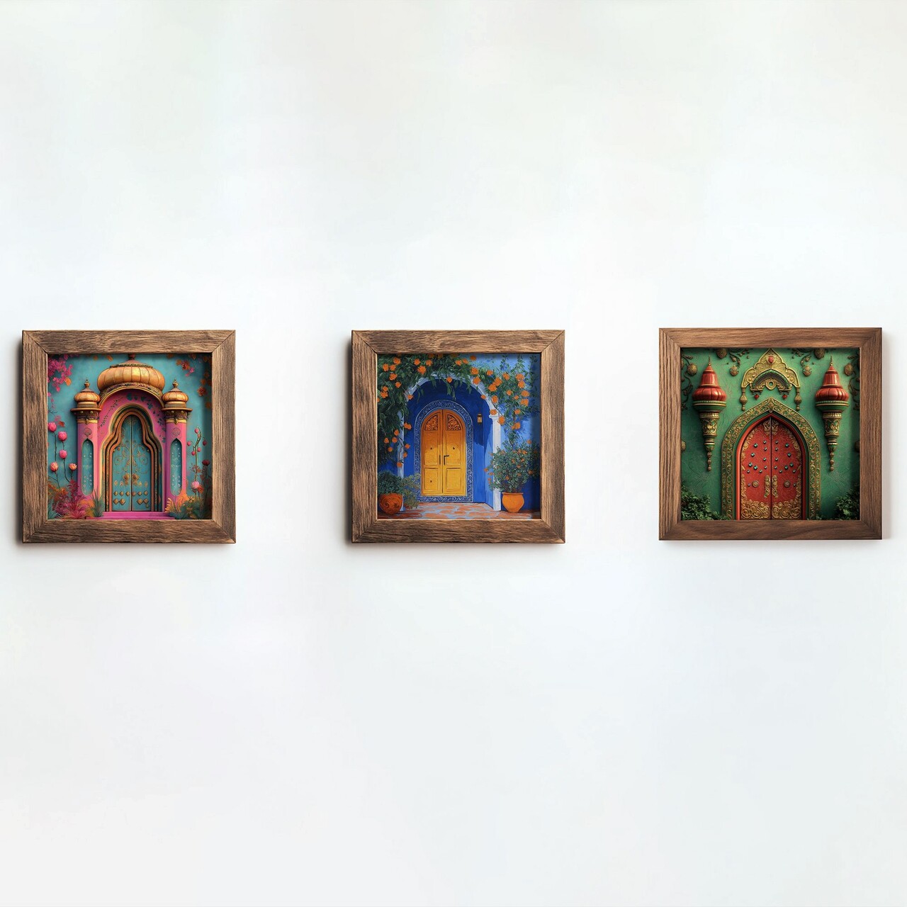 Set 3 tablouri decorative, Huhu242, Cadru: 100% LEMN MASIV (Grosime: 2 cm), Multicolor