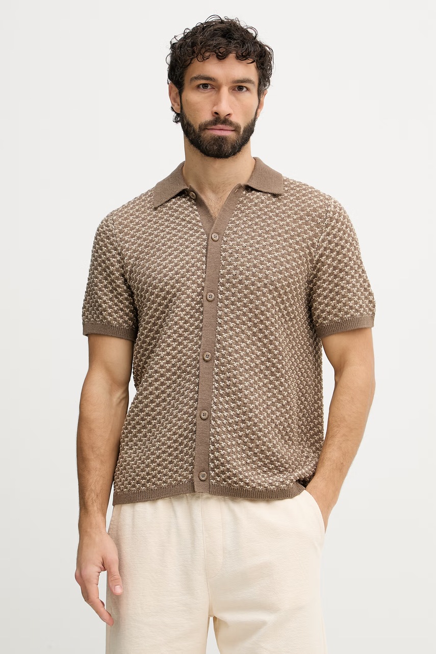 Guess cămașă bărbătească cu adaos de in RYDEN