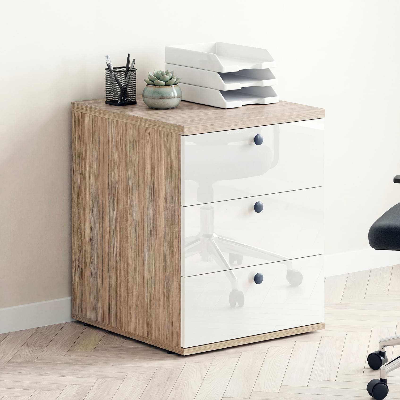 Casetiera birou STUDIO, 3 sertare, Oak, Alb Gloss