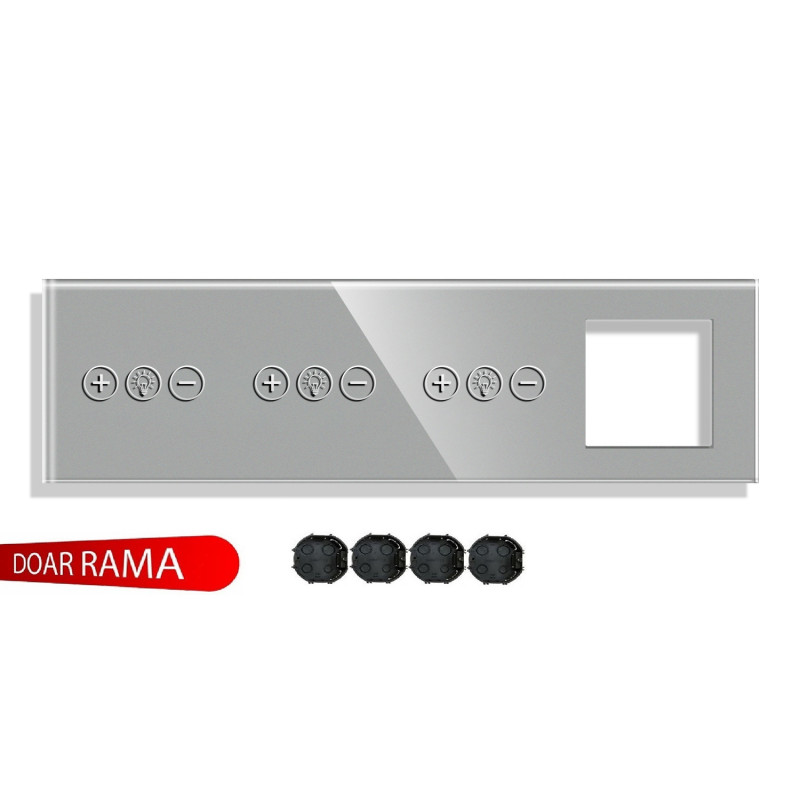 Panou întrerupător dimmer+dimmer+dimmer+rama priză din sticlă M1