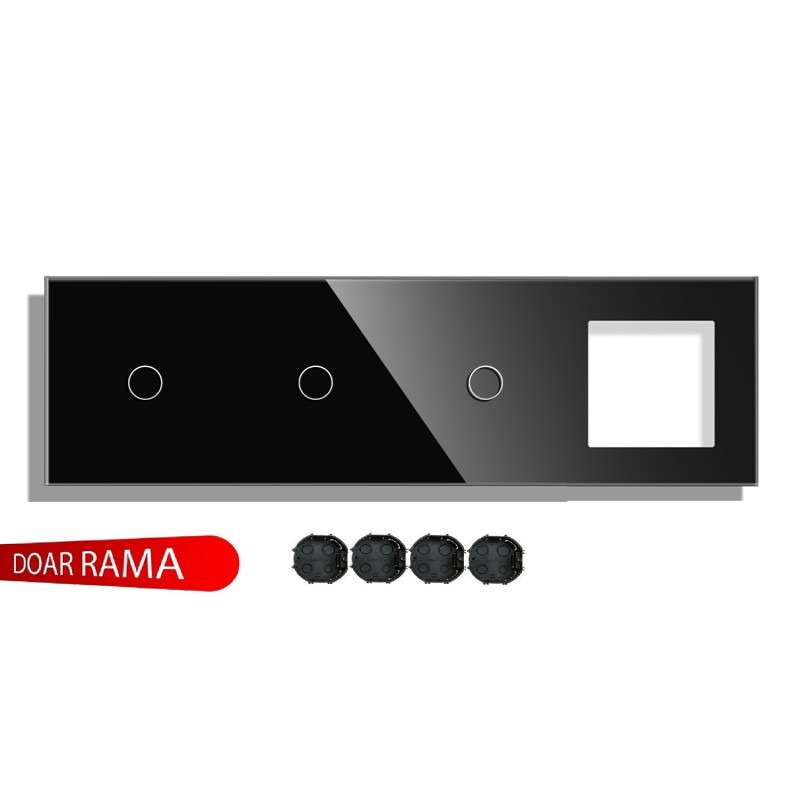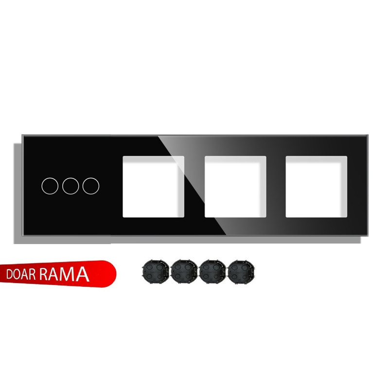 Panou întrerupător triplu+simplu M1+Ramă dublă priză din sticlă