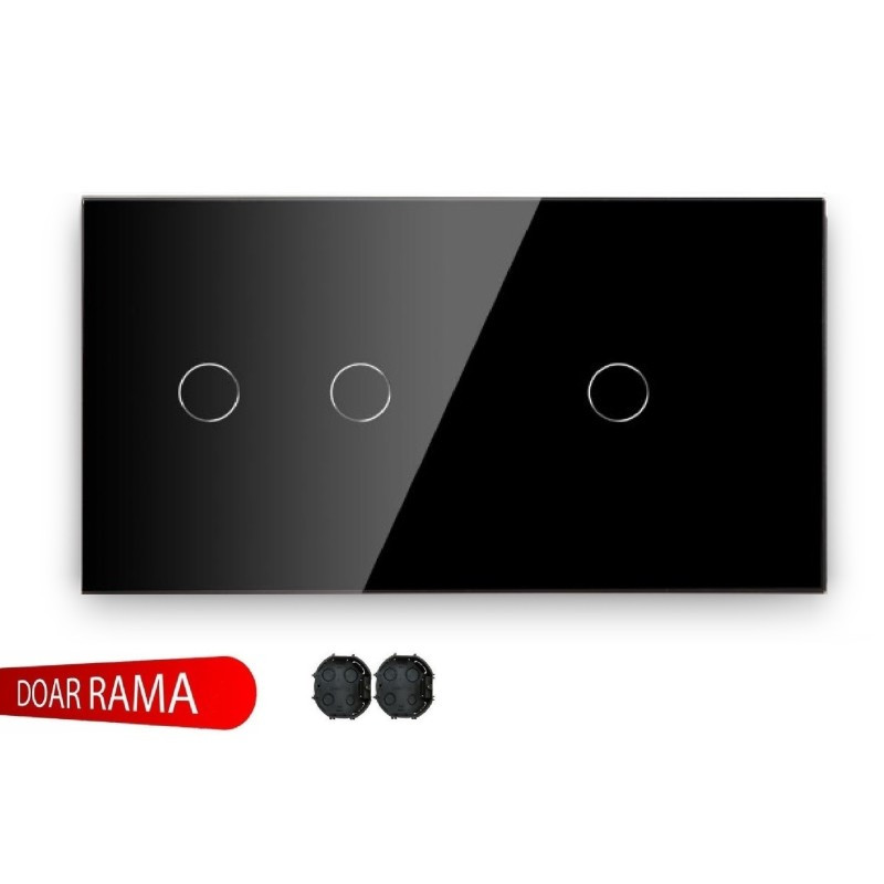 Panou întrerupător dublu+simplu M1+Ramă dublă priză din sticlă