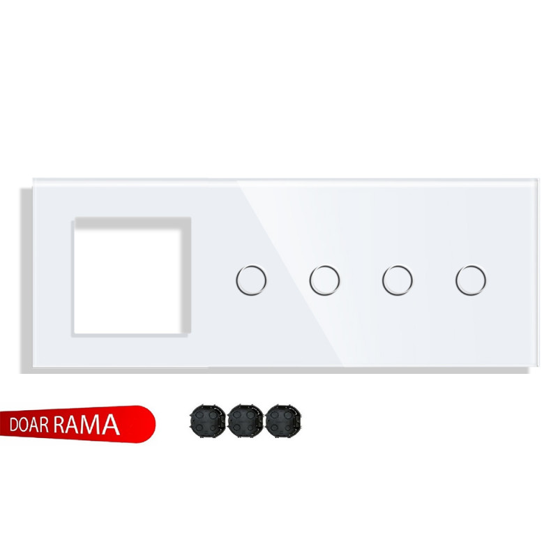 Rama priză din sticlă M1+Panou întrerupător cvadruplu+triplu