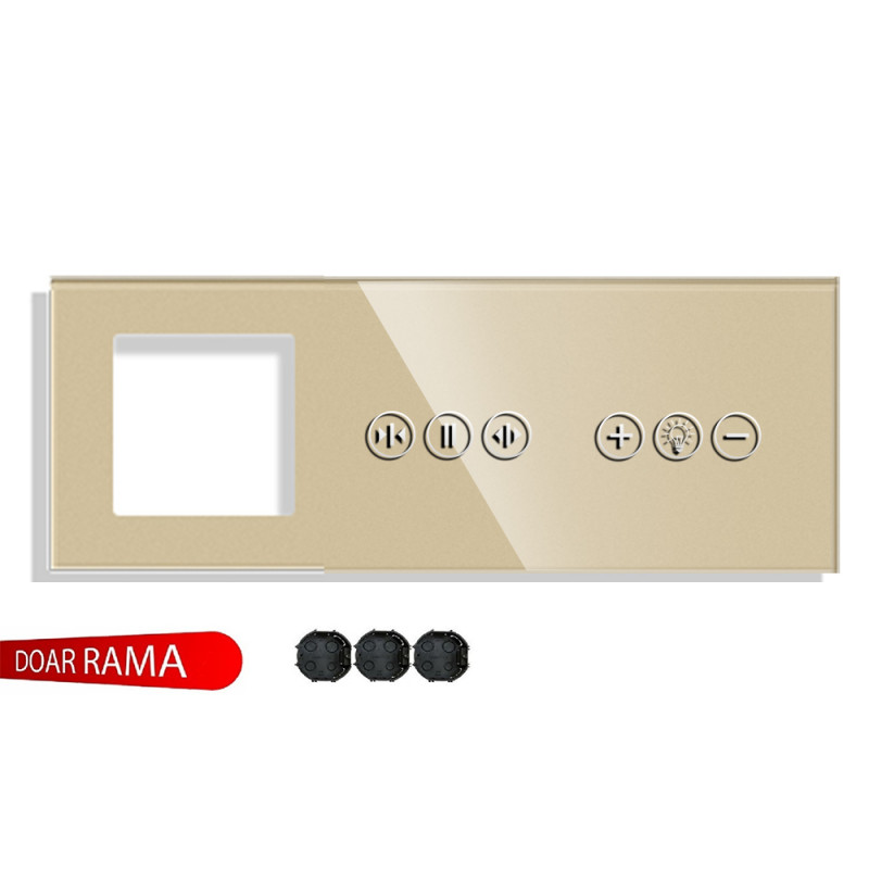 Rama priză din sticlă M1+Panou întrerupător dimmer+dimmer