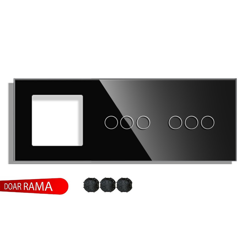 Rama priză din sticlă M1+Panou întrerupător triplu+triplu