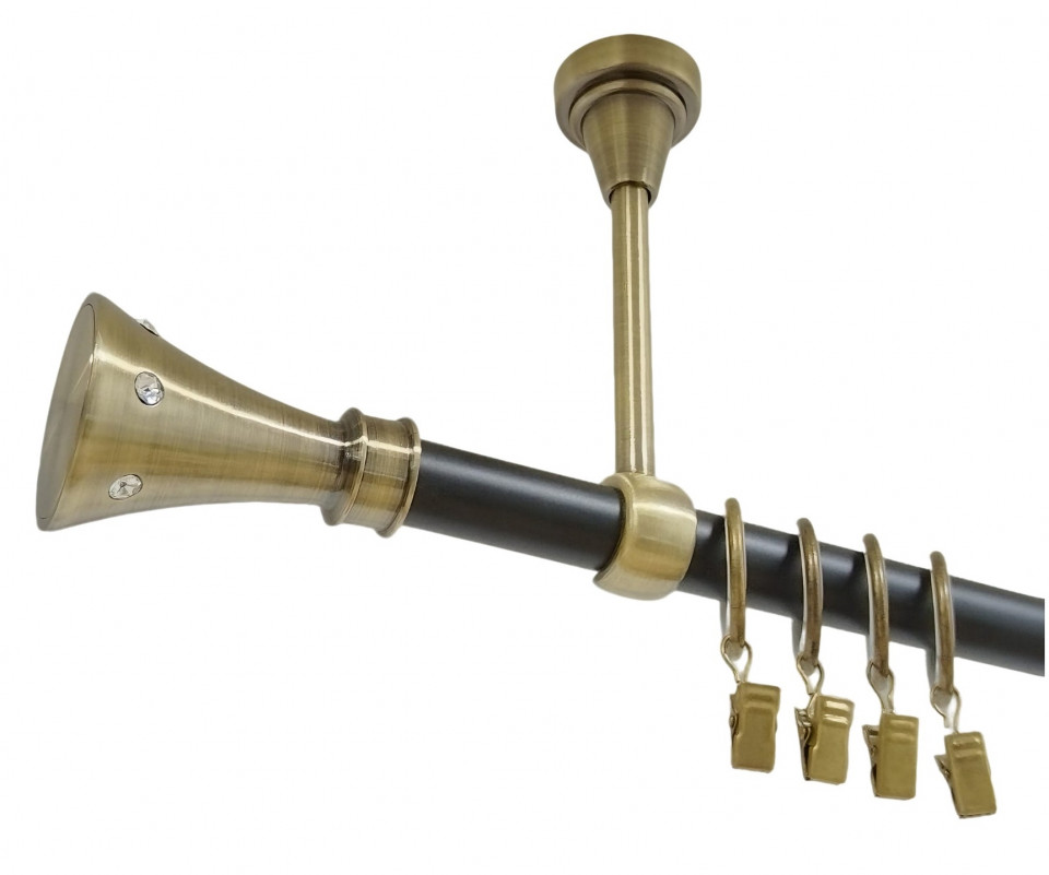 Galerie simpla 19 mm prindere perete teava profil crystal cone aur antic