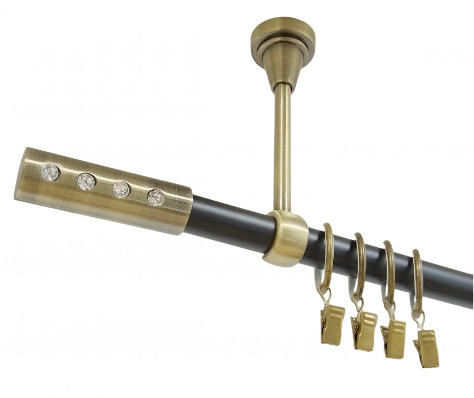Galerie simpla 19 mm prindere perete teava profil kula crystal negru aur antic