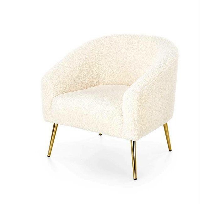 Fotoliu Grifon tapițat, stofă plusată, picioare metalice aurii, 77x67x78 cm, crem