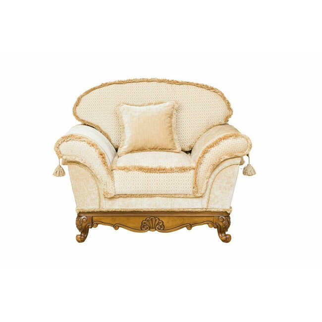 Fotoliu Rapsodi, design clasic, stofă și lemn masiv, 85x80x110 cm, crem