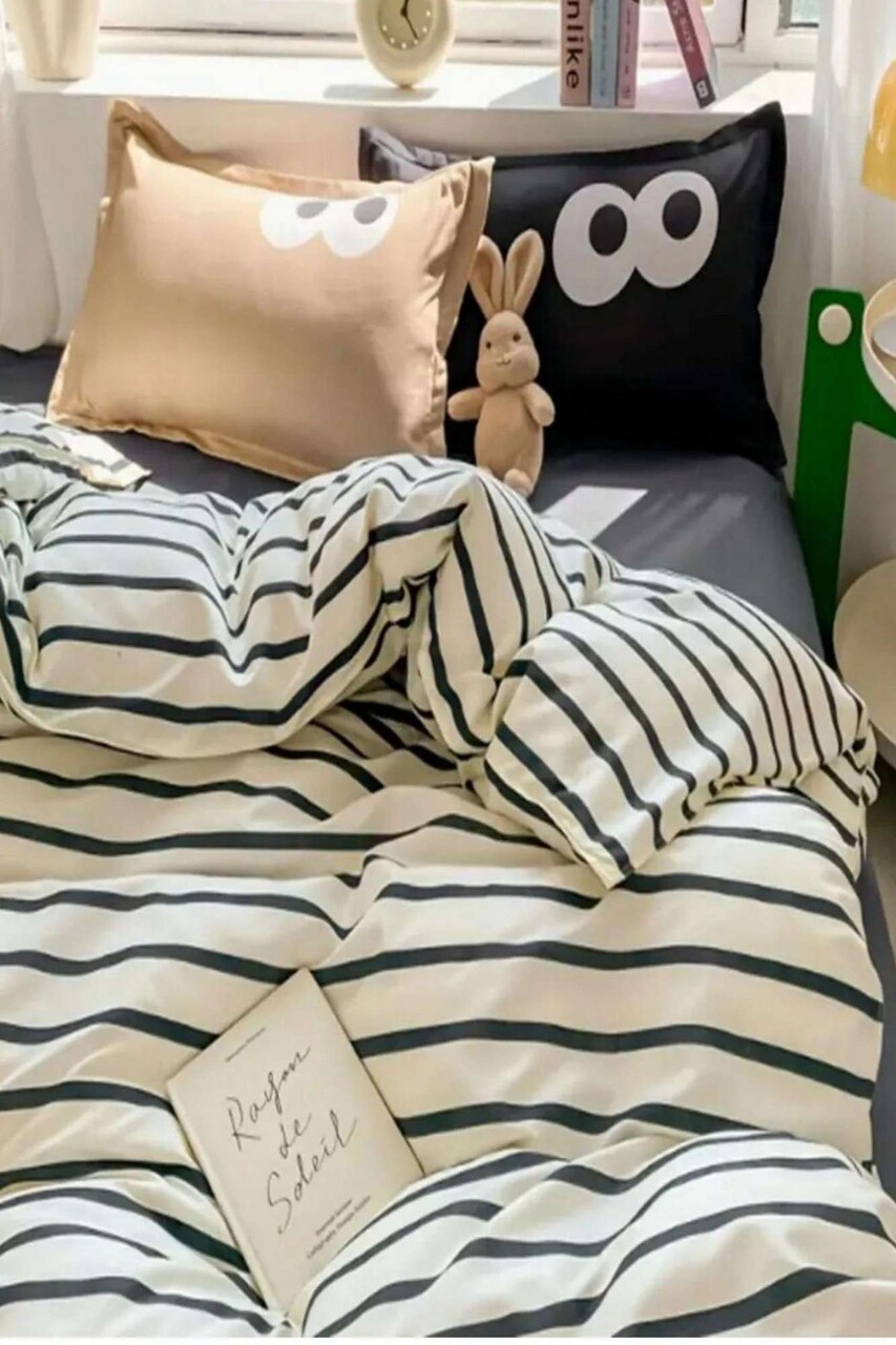 Lenjerie de pat pentru o persoana (FR), 2 piese, Lessentiel Maison, Mix, Negru / Fume