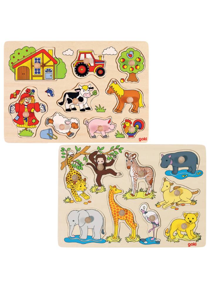 Goki African Baby Animals & Zoo Animals, Lift Out Puzzle (1240209/1240262)