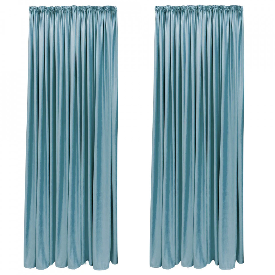 SET DRAPERIE CATIFEA VELVET CU REJANSA DE 8 CM ALBASTRU DESCHIS