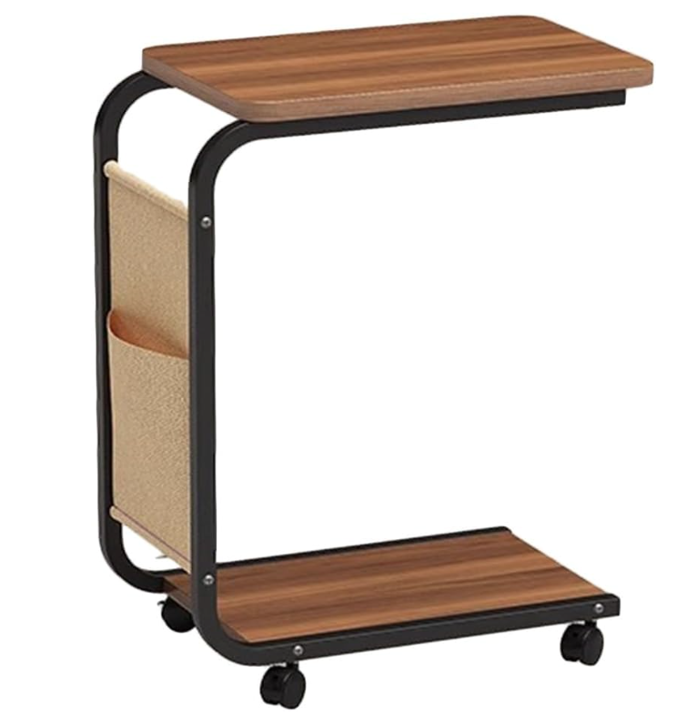 Masuta din otel carbon pentru cafea 4 roti 2 blaturi din lemn buzunar de depozitare
