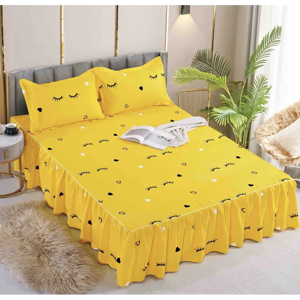 Cearceaf De Pat Cu Volane si 2 Fete De Perna Bumbac Finet - JOJ71