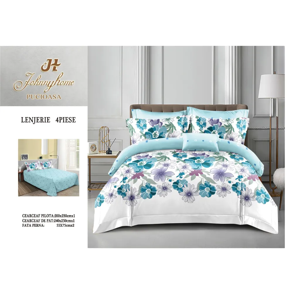 Lenjerie de Pat, Bumbac Finet, 6 Piese, Pat Dublu -JO70